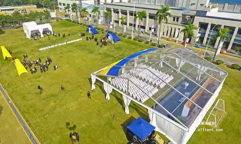 因篷房對搭建場所要求不高,可以搭建在草坪上、水泥地上、水面上等等,活動舉辦者可以更靈活地選擇自己想要搭建的場所。為了更為人性化,透明篷房還有各種形狀和靈活的結(jié)構(gòu)組合,而且搭建簡易迅速、施工周期短,非常適合用于戶外短期或者長期的活動。