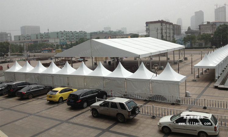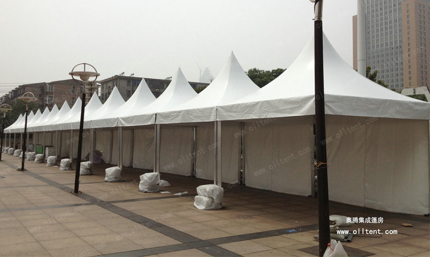 尖頂篷房優(yōu)雅,堅固,潮流,搭建工期短,易于組裝和拆卸。新錐頂篷固定方式,已獲得設計專利證書,新的固定方式,不但大大減少了組裝時間,很好的防止滑出。無需大型機械協(xié)助,單個也可用排水槽連接起來組成更大的面積,形成特殊的造型。