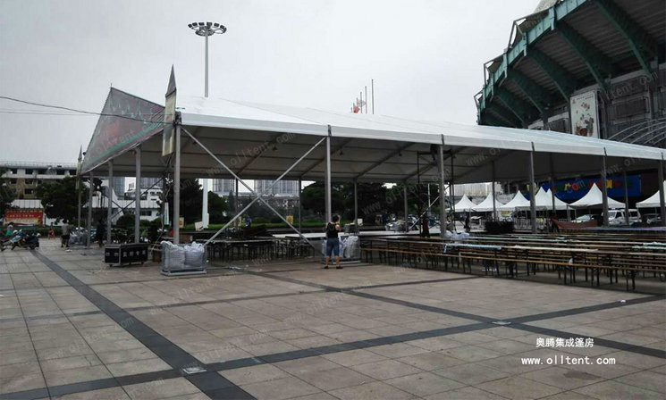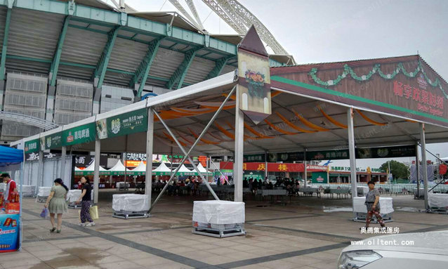 奧騰大型篷房可滿足于各種不同的活動需要。超大凈跨度:10-60米,模塊化結構,搭建工期短,易于組裝和拆卸。大型篷房外形優雅、搭建靈活、安全環保、防雨、防曬、防霉、阻燃,可抗8-10級大風,廣泛應用于各類戶外臨時性活動,作為臨時或長期建筑都是很好的選擇。